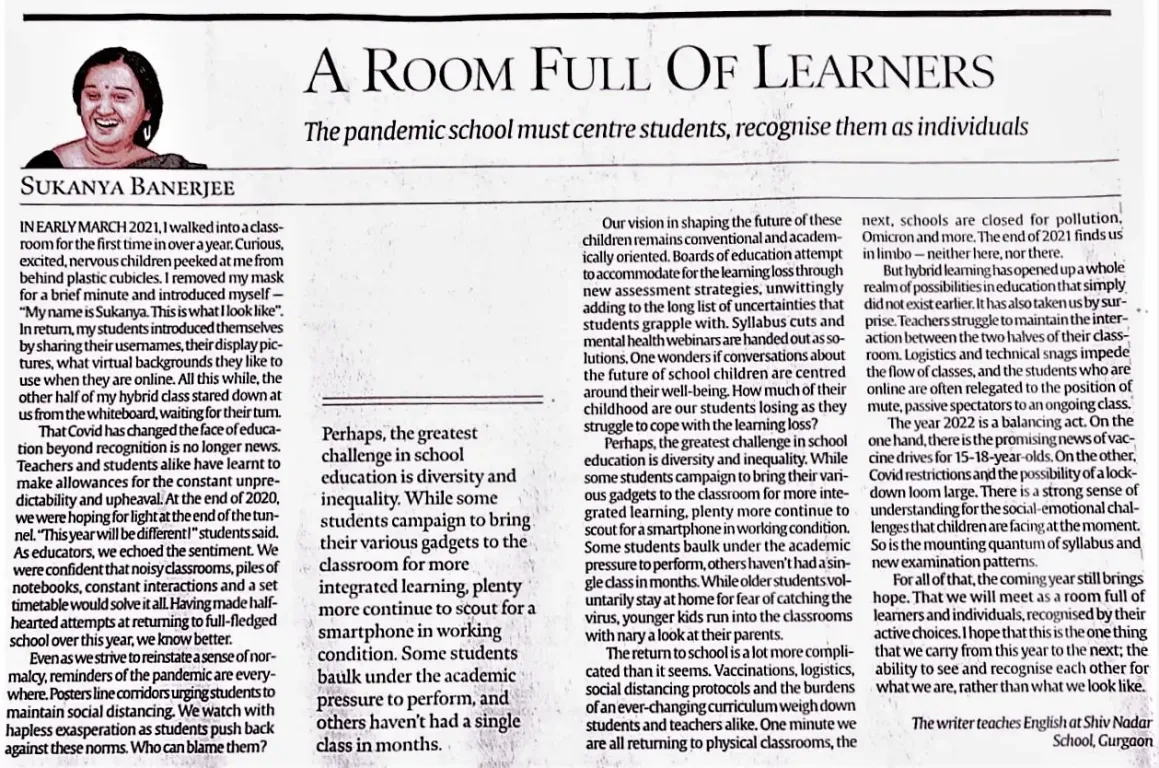 We are pleased to share an article in the Education News - The Indian Express. Ms. [...]