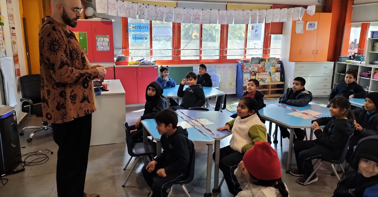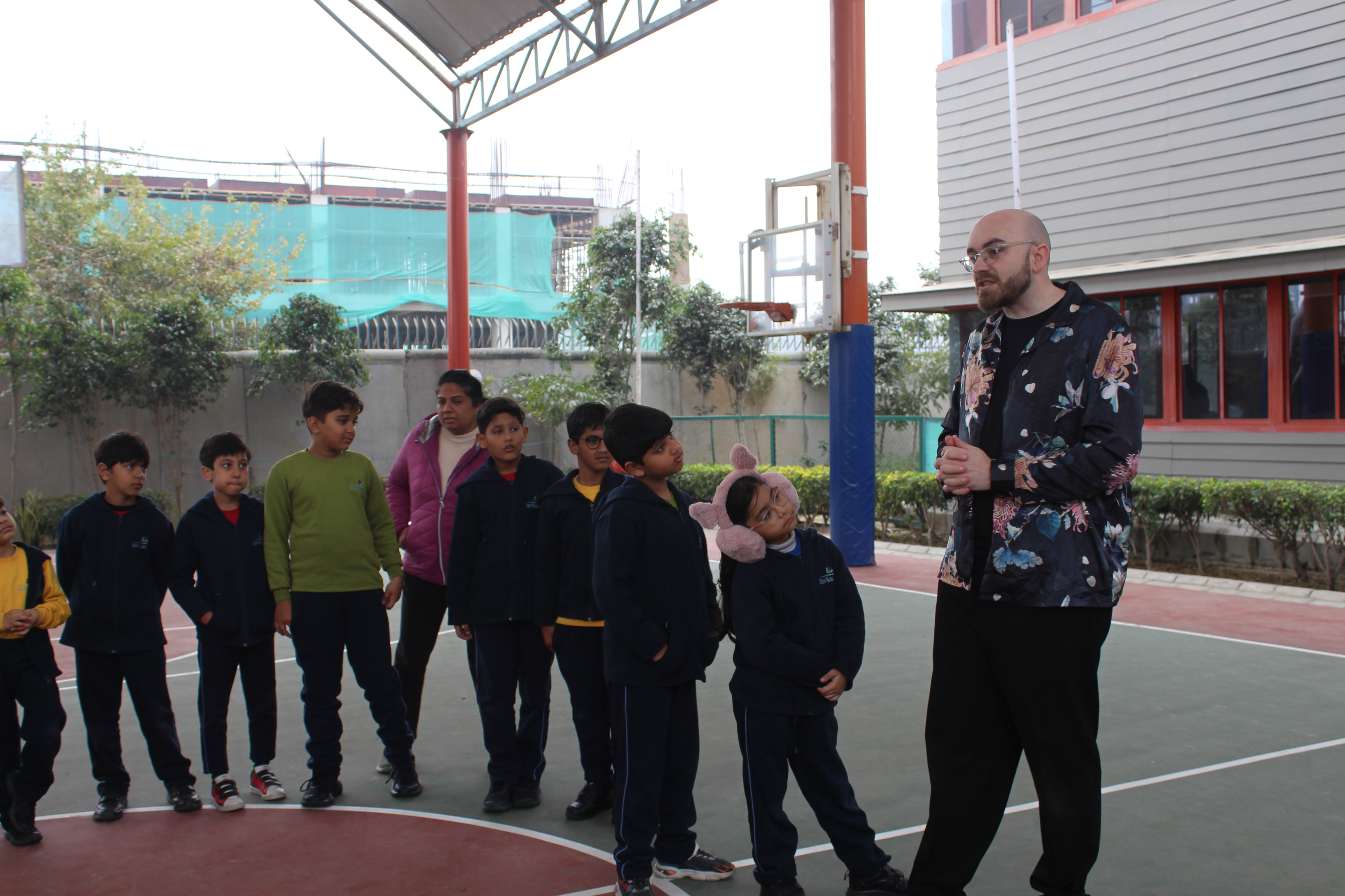 When creativity, knowledge and self-confidence interweave, children can achieve remarkable things. This essence of learning resonated during the entire length of the workshop conducted by Mr. Jonny Walker, Director of Other Wise Education. Mr. Walker works extensively with children to develop their self-expression and self-understanding with the help of poetry and other literary means. The workshop offered an opportunity to Grade 2 students to explore the fabric of nonsensical poetry through the poem ‘Jabberwocky’ by Lewis Carrol. It was an absolute delight to watch the students completely immersed in the fun-filled workshop wherein they enacted and showcased their interpretation of the seemingly gibberish poem.