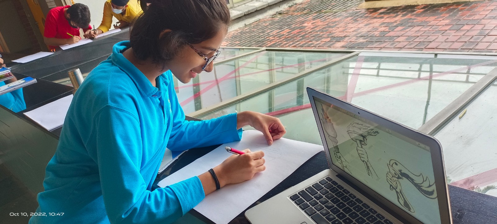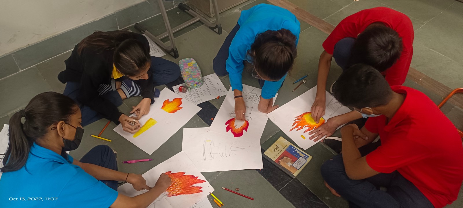 सी.बी.एस.ई. के द्वारा निर्धारित किया गया 'कला समेकित अधिगम' शिक्षण के अंतर्गत कक्षा 9 के छात्रों ने 'अग्नि पथ' कविता को आधार बनाकर अपने उद्देश्य तथा लक्ष्य को प्राप्त करने हेतु आने वाली चुनौतियों तथा बाधाओं को समझते हुए उनके निवारण हेतु समाधान निकलने की प्रक्रिया को कला के माध्यम से प्रस्तुत करने का प्रयास किया ।