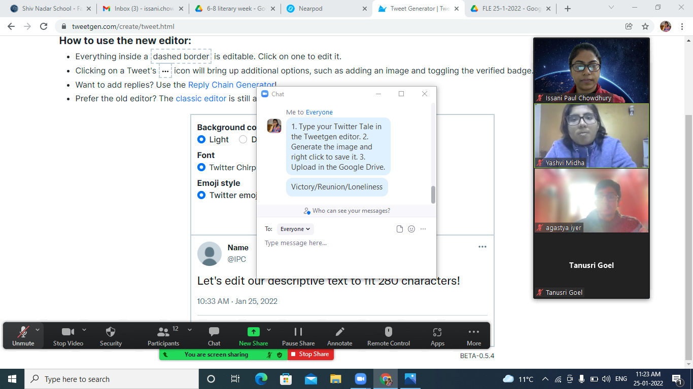 One of the activities taken up in the senior school was Twitter tales. In Twitter Tales, one needs to compose a story within 280 characters, including spaces ,with a beginning and an ending. It surely unleashed the creativity and a new generation of twiterratti was born.