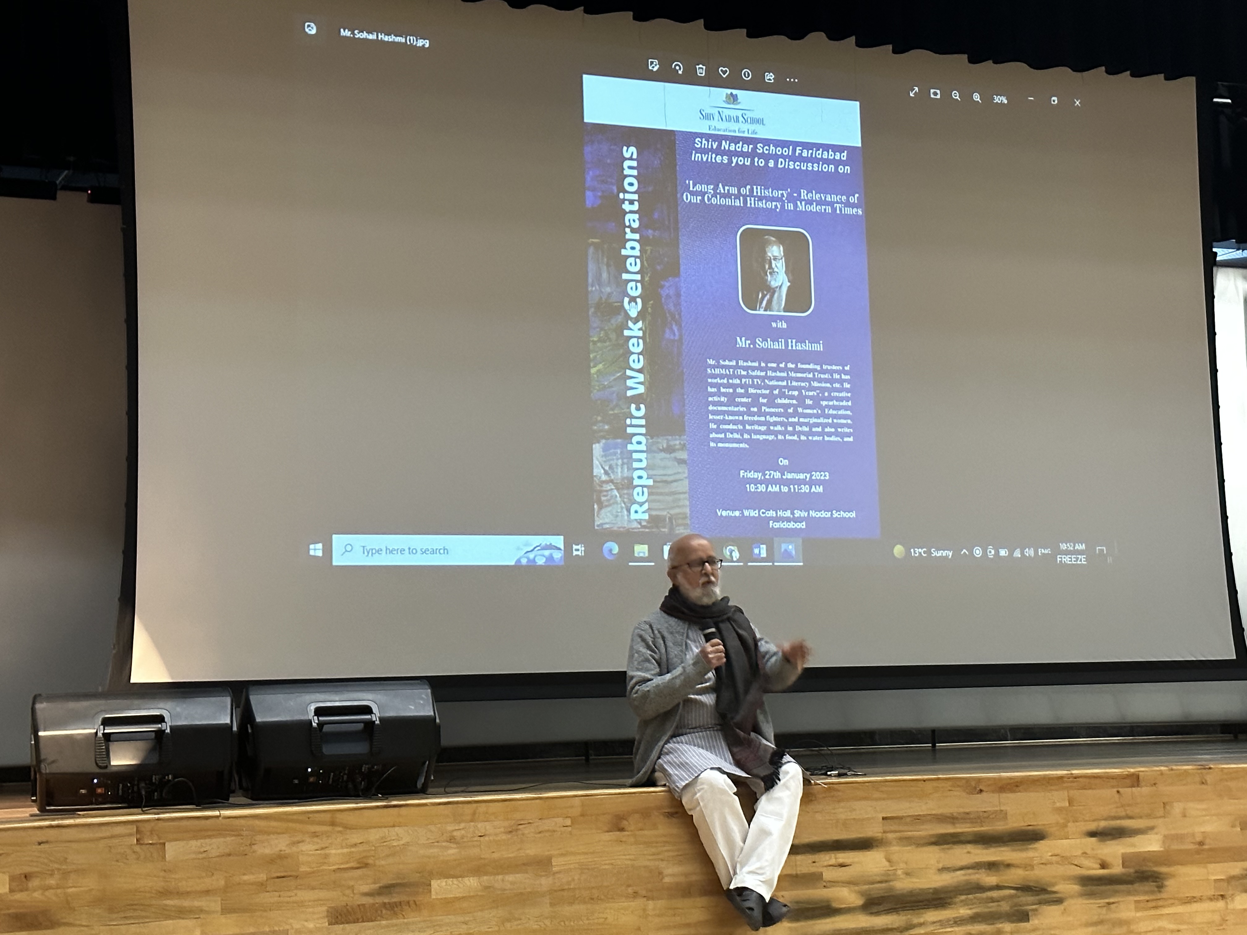 The Republic week was culminated with great pomp and show. There were colourful tableaus and parade by the grades of 6-9. The states of Assam, West Bengal, Haryana, Tamil Nadu ,Rajasthan, Kerala were proudly showcased by the students. Another tableau showing the achievements of ISRO was also presented. This was followed by gallery walk showcasing various skits, models and presentations.A discussion on 'Long Arm of History' - Relevance of our Colonial History in Modern Times with Mr.Sohail Hashmi.Sohail Hashmi is one of the founding trustees of SAHMAT (The Safdar Hashmi Memorial Trust). He has worked with PTI TV, National Literacy Mission, Home TV, BiTV and Kingfisher.com. He has been the Director of ''Leap Years'', a creative activity centre for children.