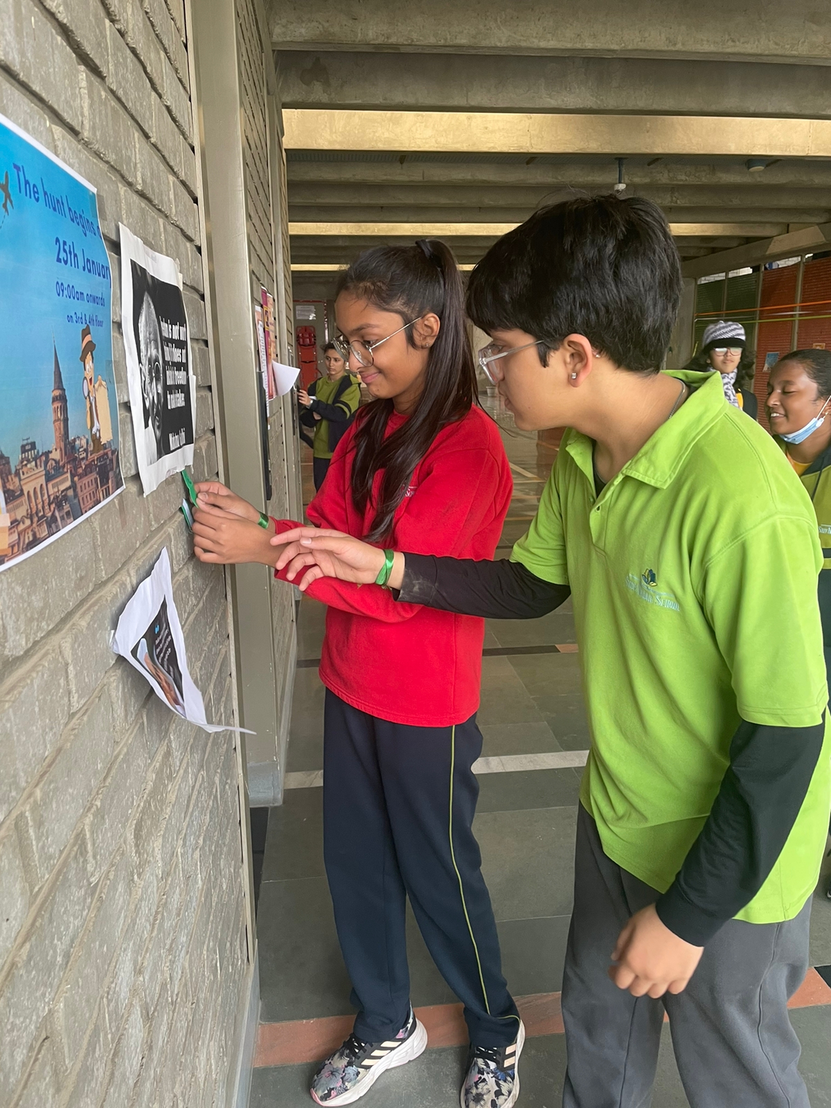 Day Two of the Republic Week Celebrations were kick started with the event Bharat ki khoj, a treasure hunt for grade 6 -8. The students corelated clues about famous personalities, books and concepts from Social Science. This was followed by an I movie competition for grade 6-9 whereby the students exhibited their creativity through short movies on freedom, justice, rights and the Indian constitution.