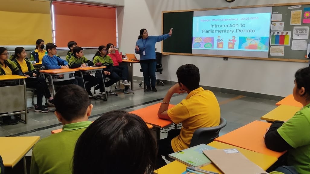 The Republic week celebrations started with the Inter House Quiz for grades 6-8. Students were quizzed on questions about the Indian government and politics. The Parliamentary debate on Uniform Civil Code was conducted for Grade 9 and 11. The students learnt the technique of debating in the British Parliamentary style.