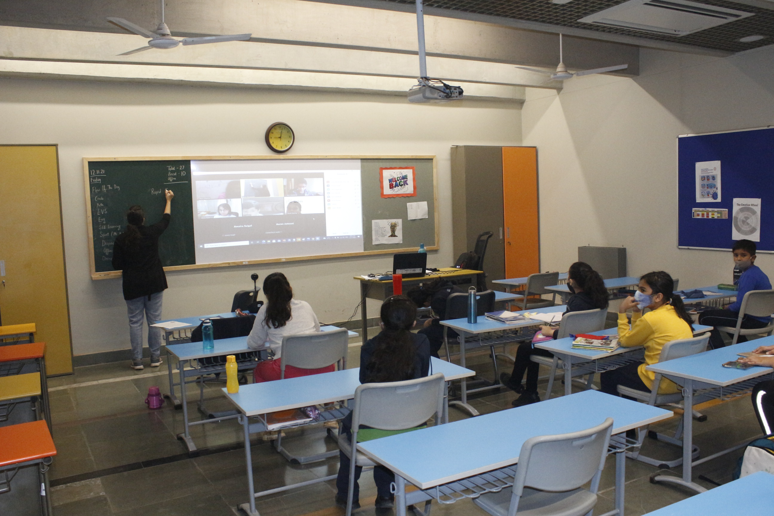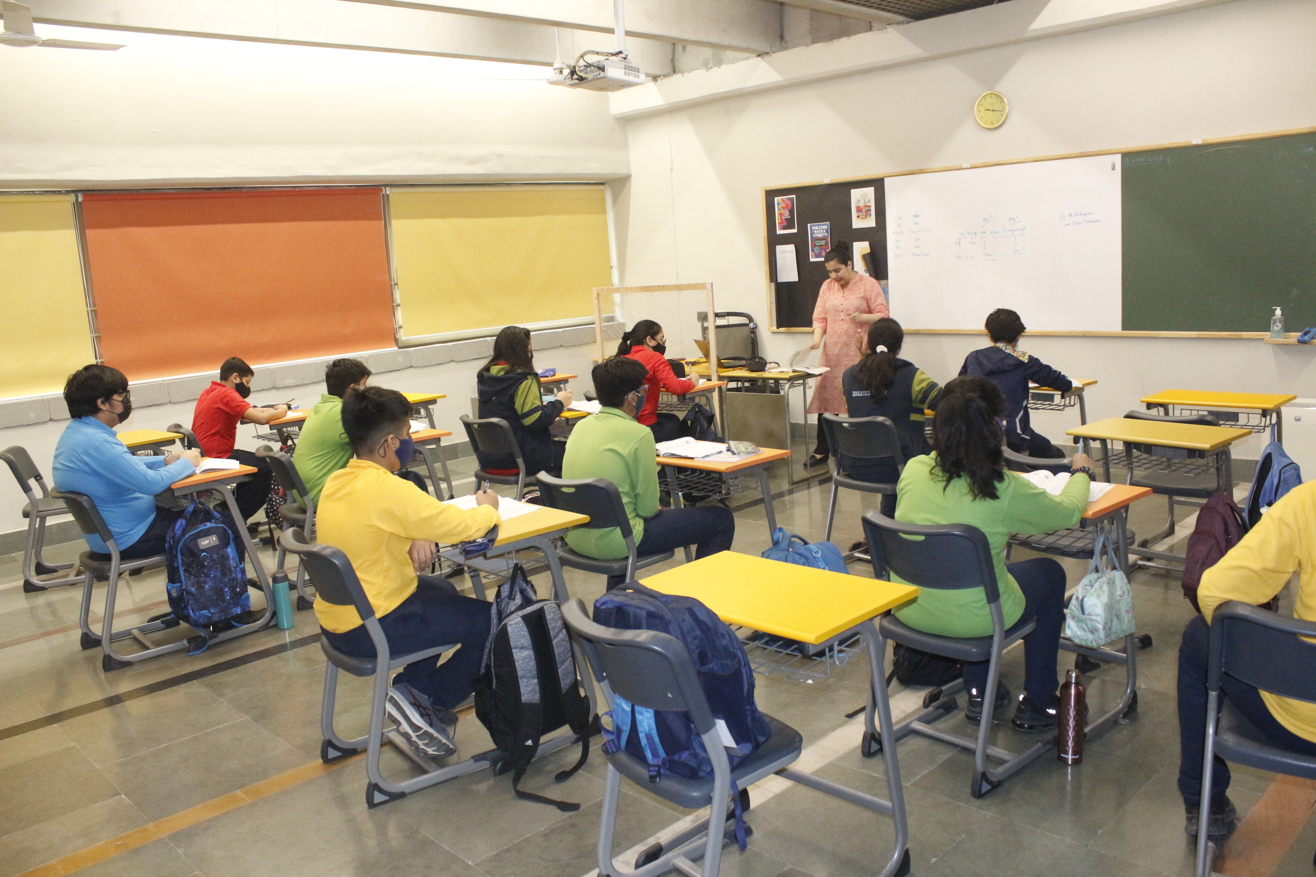 Our design to bring children back toschoolhas been well structured and planned. With Sports being at the forefront of orientation, theschoolgrounds havecomealivewith the agility and energy of our children. The classrooms have been live wire with learning in the physical space in synch with parallel online teaching. The Role of the Teacher cannot ever be underestimated. Children's safetyis our top-most priority and proper arrangements have been made in the classrooms keeping all safety norms and protocols intact. Air Purifiers are well installed in each classrooms to maintain the AQI Levels. Our Grade X Children sit for their Term 1 Baord Examination as well.