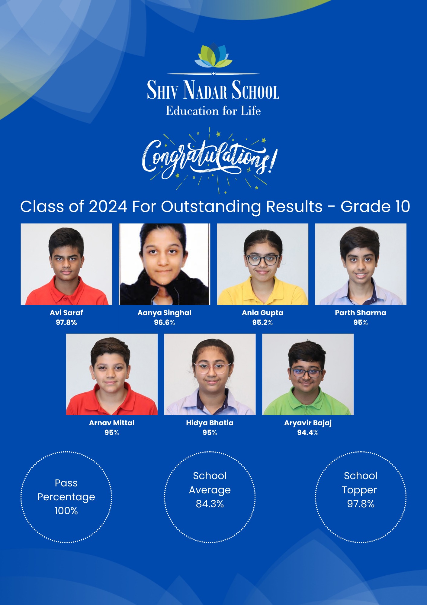 Shiv Nadar School Faridabad is proud to announce the exceptional performance of its Second CBSE Grade 12 and 10 batch in the 2024 board examinations. The school is thrilled to showcase the remarkable achievements of its students.