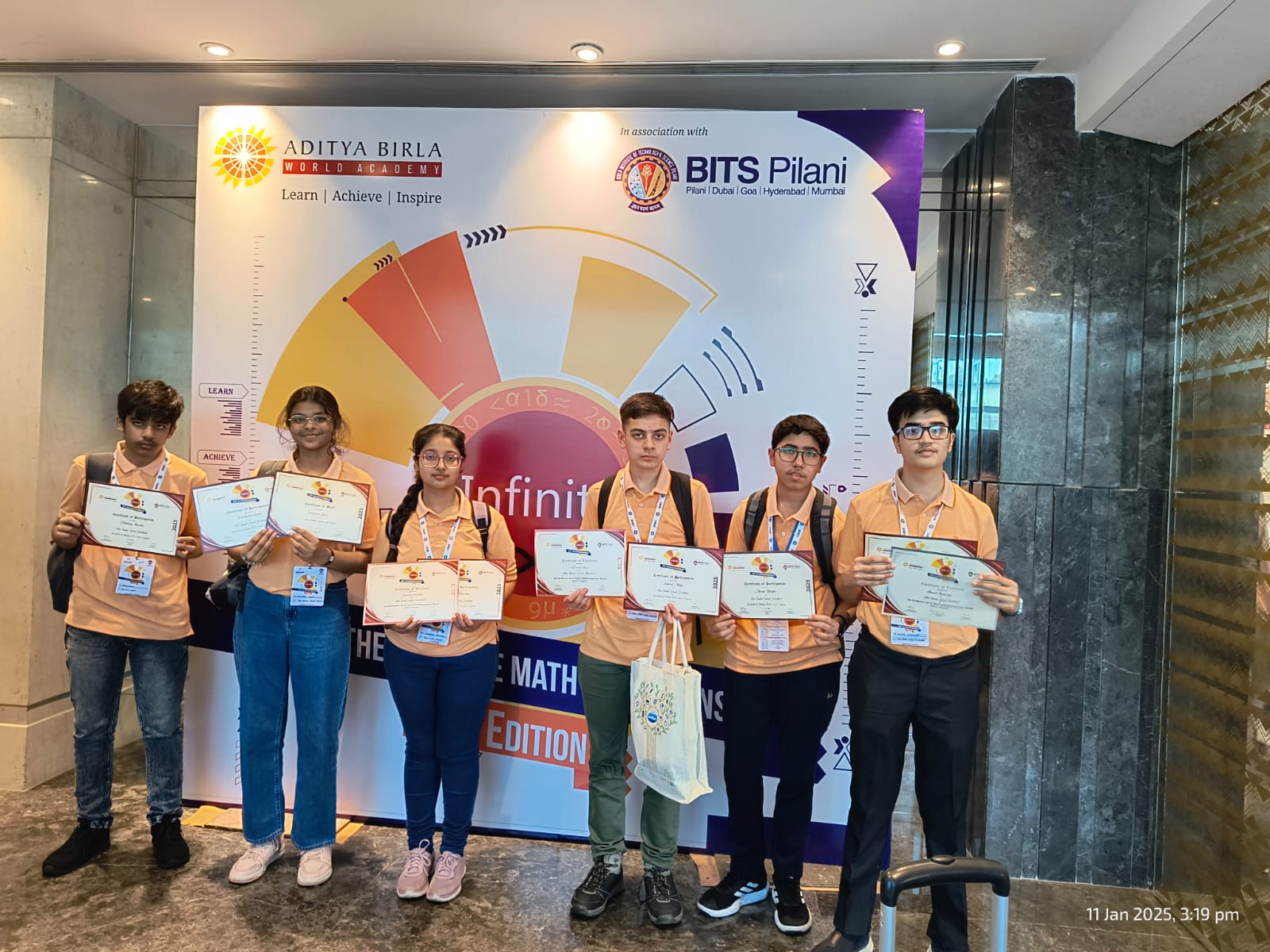 The Infinity Math Challenger Competition hosted by Aditya Birla World Academy in collaboration with BITS, Pilani, was held on 9th, 10th, and 11th January 2025 at Mumbai. Two teams from Shiv Nadar School Faridabad, who had cleared the first round, participated in this prestigious competition, which brought together teams from global schools.