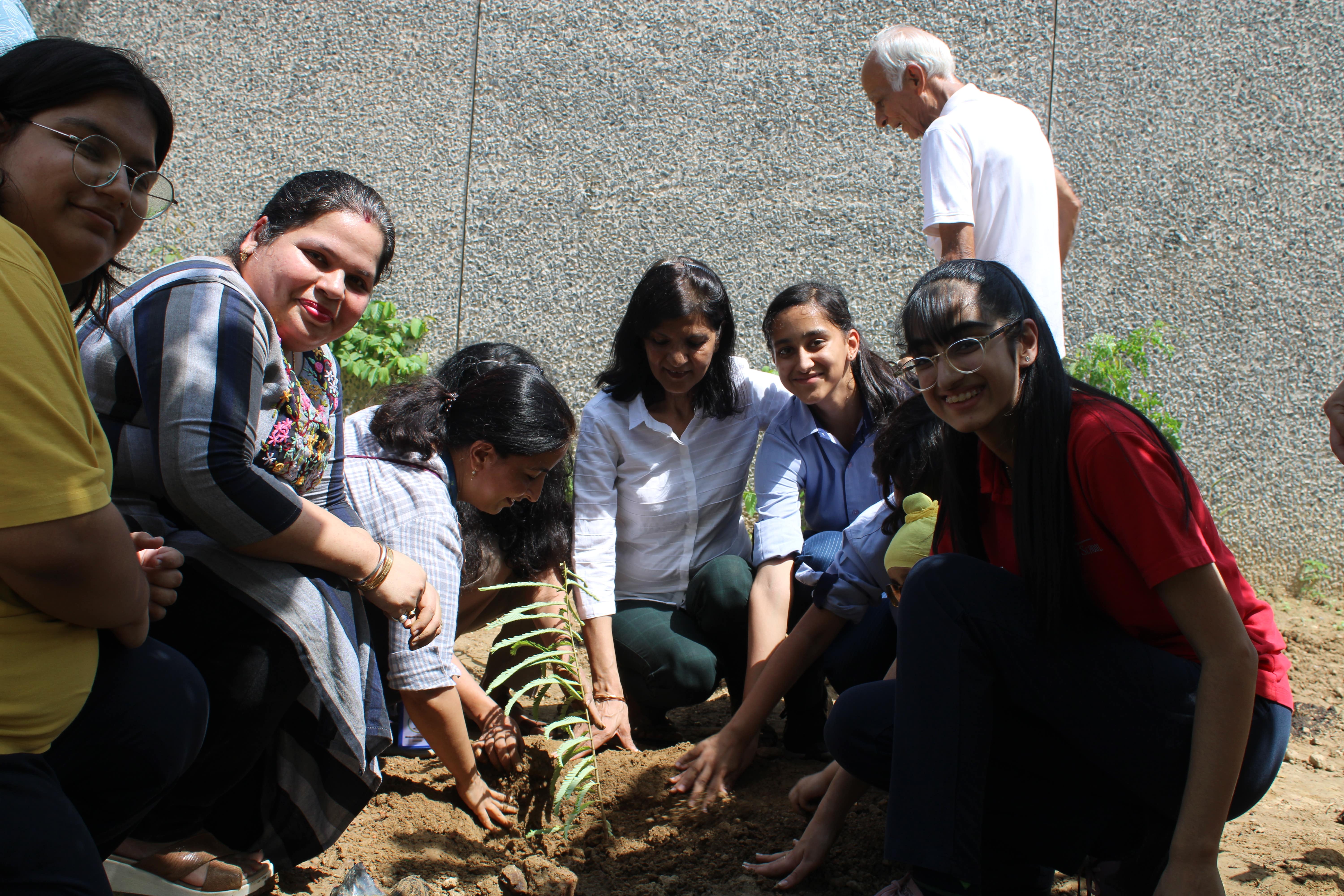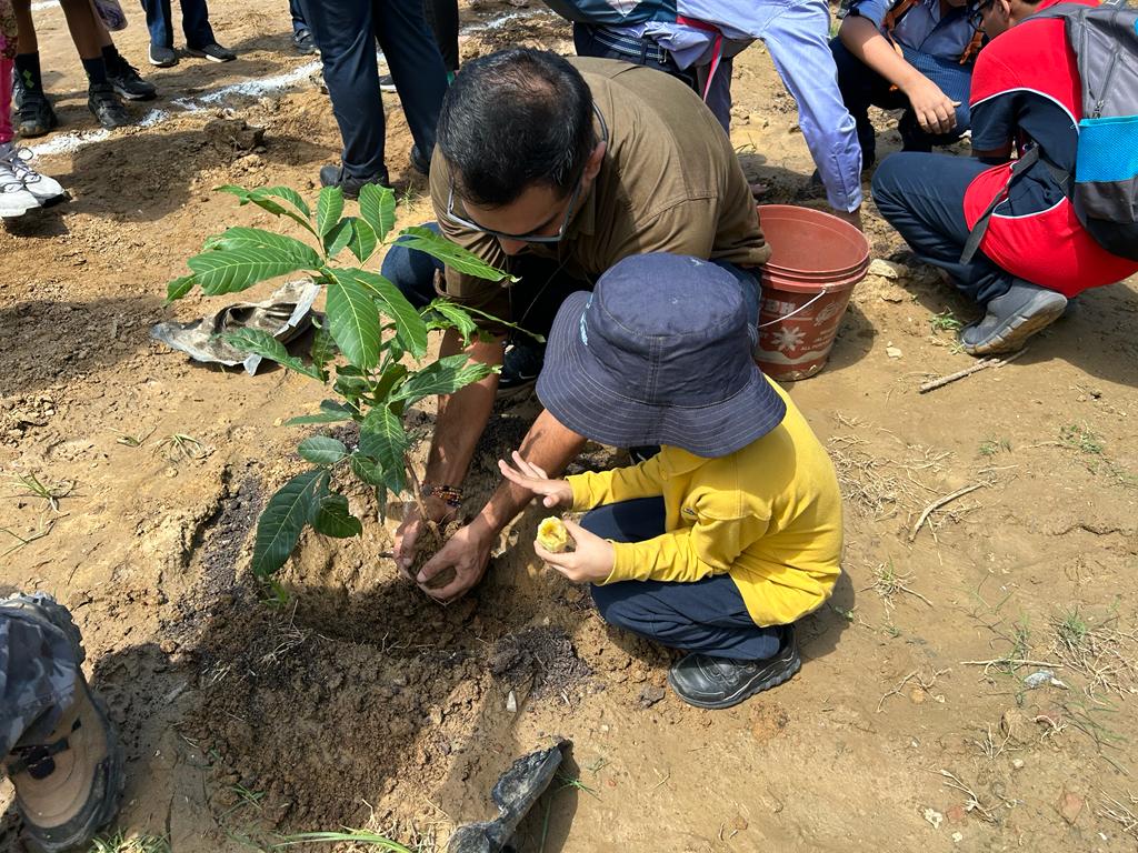 Nestled within the North Block boundary area, the "Shiv Nadar School Forest" project, in collaboration with 'Give Me Trees,' is a testament to our green vision that unfolds over two transformative years. With dedicated teachers, eager students, and engaged parents, we are crafting something truly exceptional. The mission is to transform this space into a captivating forest, complete with tranquil water bodies and inviting walker's paths, all while planting an impressive ensemble of 8000 evergreen trees. This project's distinctiveness lies in its unwavering commitment to sustainability. It embodies our dedication to safeguarding critical groundwater resources by creating a self-irrigated green belt independent of underground water sources.