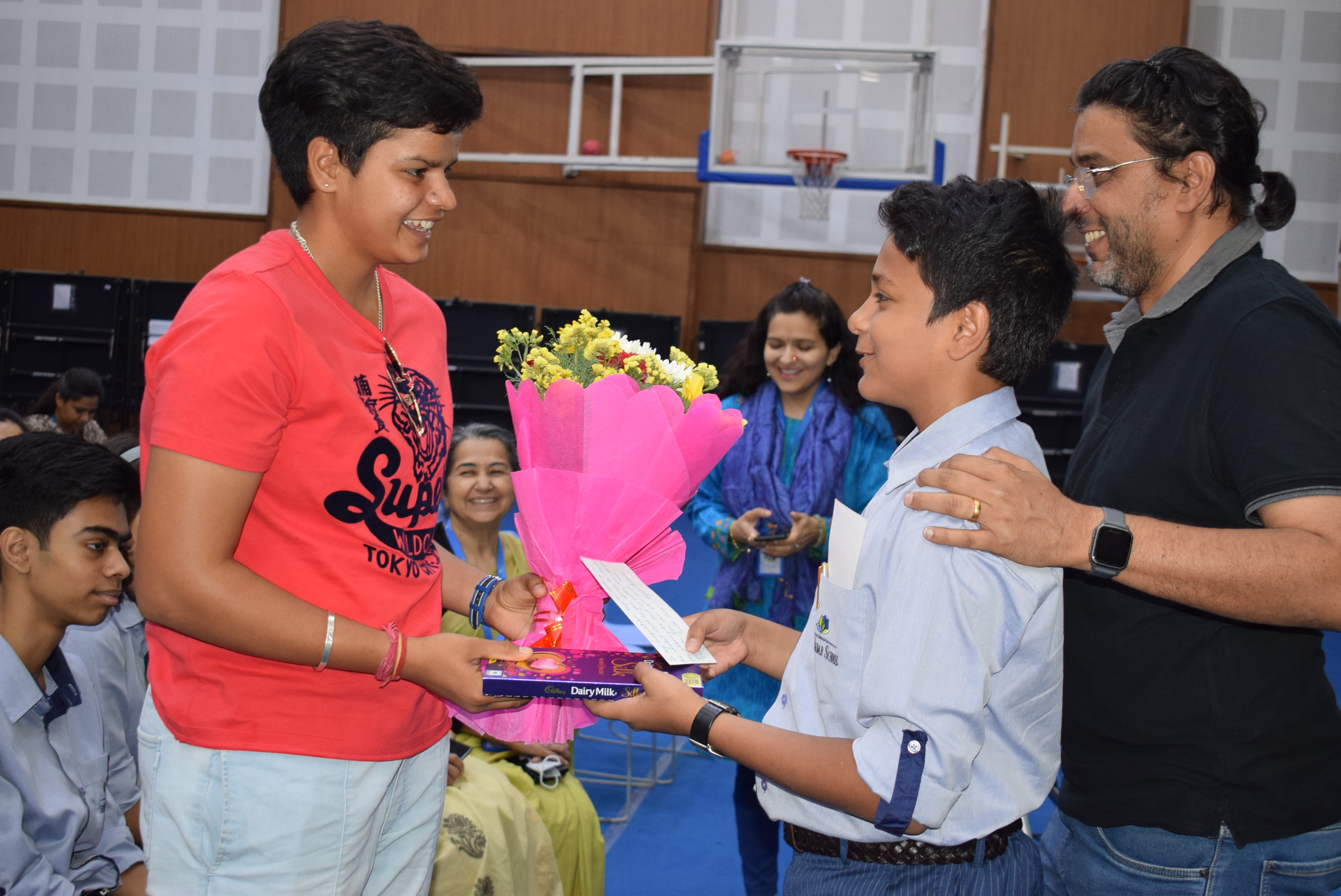The school welcomed Shafali Verma, one of our own students, from the Batch of 2023 and member of the Women’s Indian Cricket Team. Shafali not only mingled with her batch mates but also very sportingly participated in the Walk the Talk Series in which she was interviewed by her peers at school, Mariya Abbas, Shafali’s batch mate and a budding footballer and Saatvik Das, a budding sports journalist from Grade 11. Arjuna Bhattacharya, outgoing CGC Prefect 2021-22 felicitated Shafali by presenting a portrait of Shafali made by Diya Gupta of grade 8.