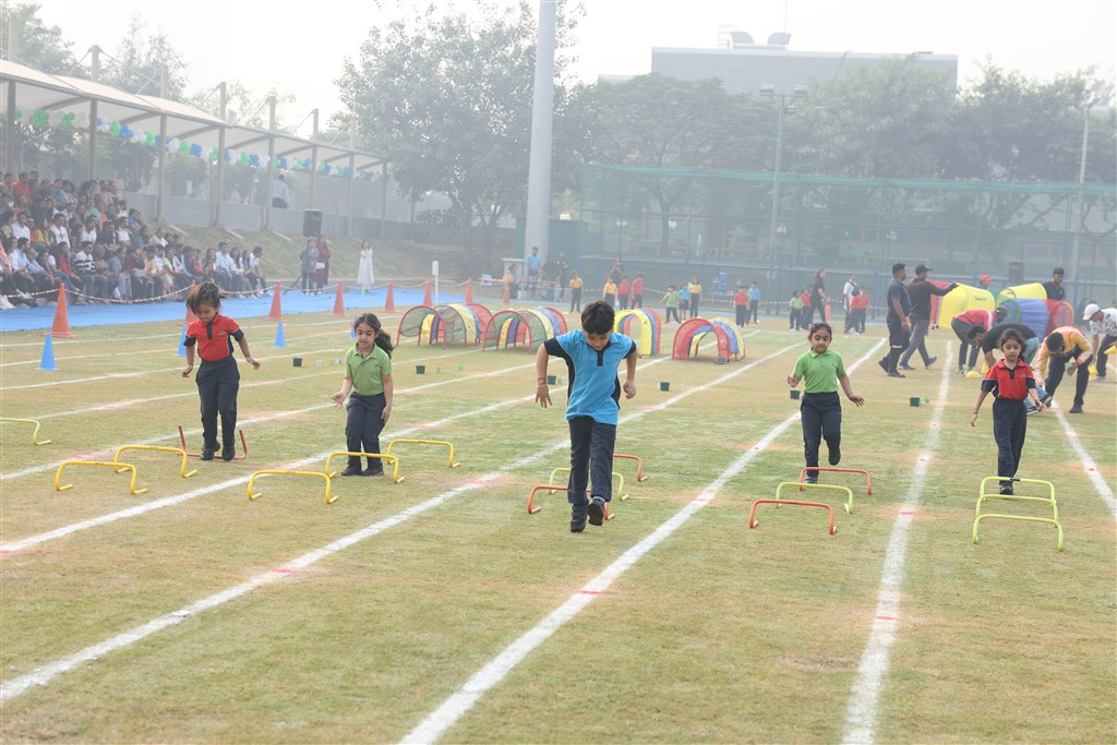 With high spirits and energy, the Early Years successfully concluded their Annual Sports Day 2023 which revolved around the theme ‘We love Animals’. After days of dedicated practice, our young learners enthusiastically performed various activities where they honed their skills in agility, balance, orientation, rhythm, and reaction. The event commenced with an opening address from our Director Principal, Ms. Anju Wal followed by a warm welcome and felicitation of our Chief Guest, Mr. Karan Vashisht. The children from all three grades showcased their physical development through Music and Movement performances. Different theme-based races were curated, which were age-appropriate. It was a pleasure to see all the children participate with zeal and ardour. The event concluded with a true spirit of sportsmanship as the children participating were all recognized as winners and awarded a gold medal.